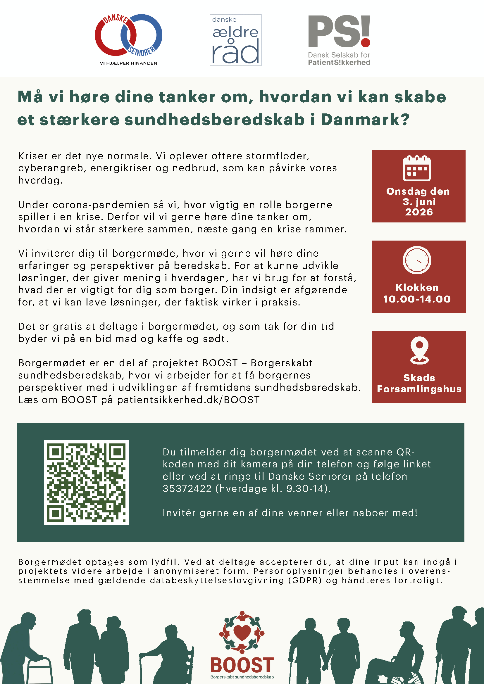 Borgermøde om borgerskabt sundhedsberedskab i Skads Forsamlingshus 3. juni 2026